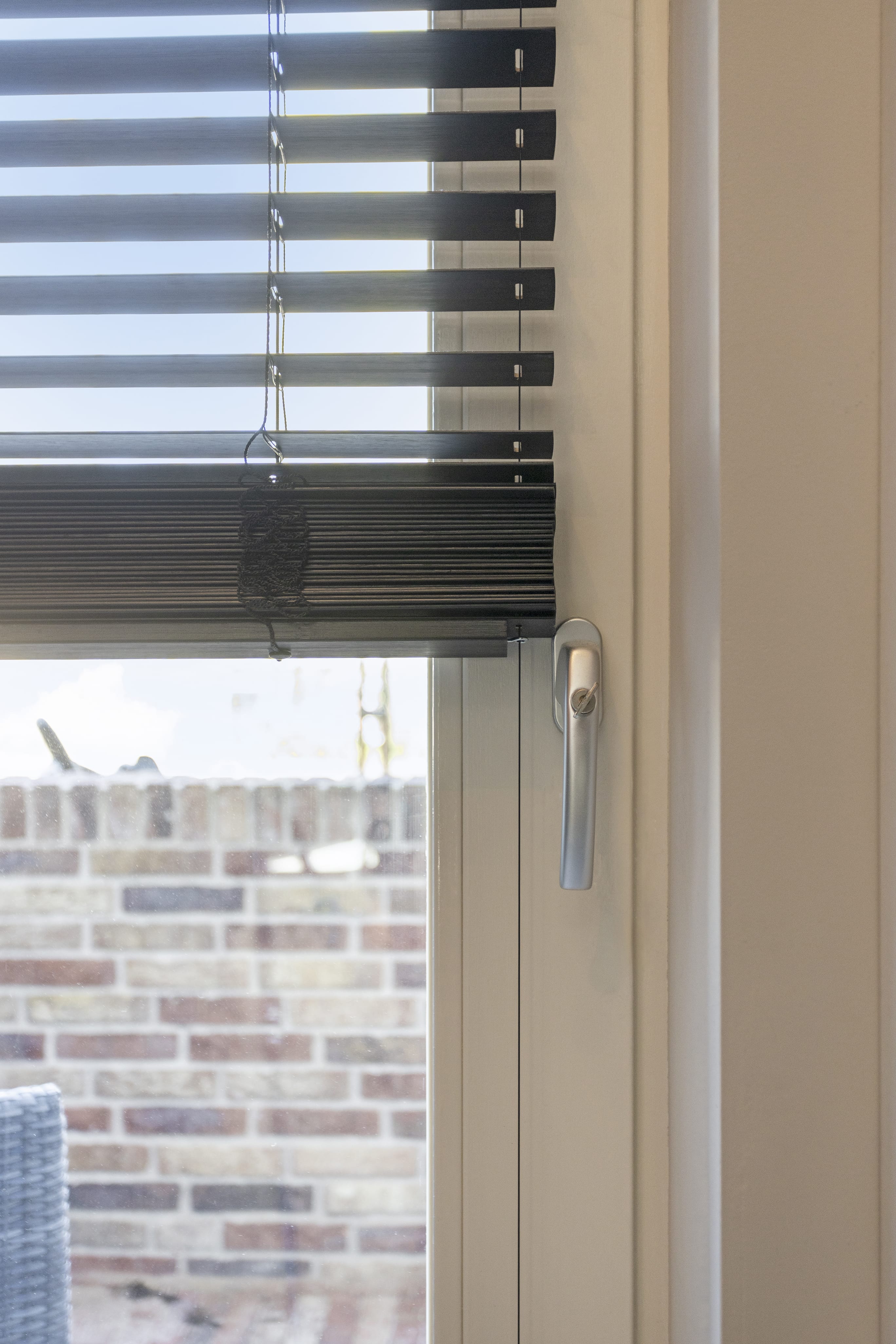 Een andere optie voor houten jaloezieën en draai-kiepramen zijn fixeerbeugels. Deze bevestig je door in het kozijn te boren. De beugel houdt de jaloezie op zijn plek zodat deze niet klappert. Daarentegen is het niet mogelijk om de houten jaloezieën voor het draai-kiepraam op te trekken, je kan ze enkel kantelen.