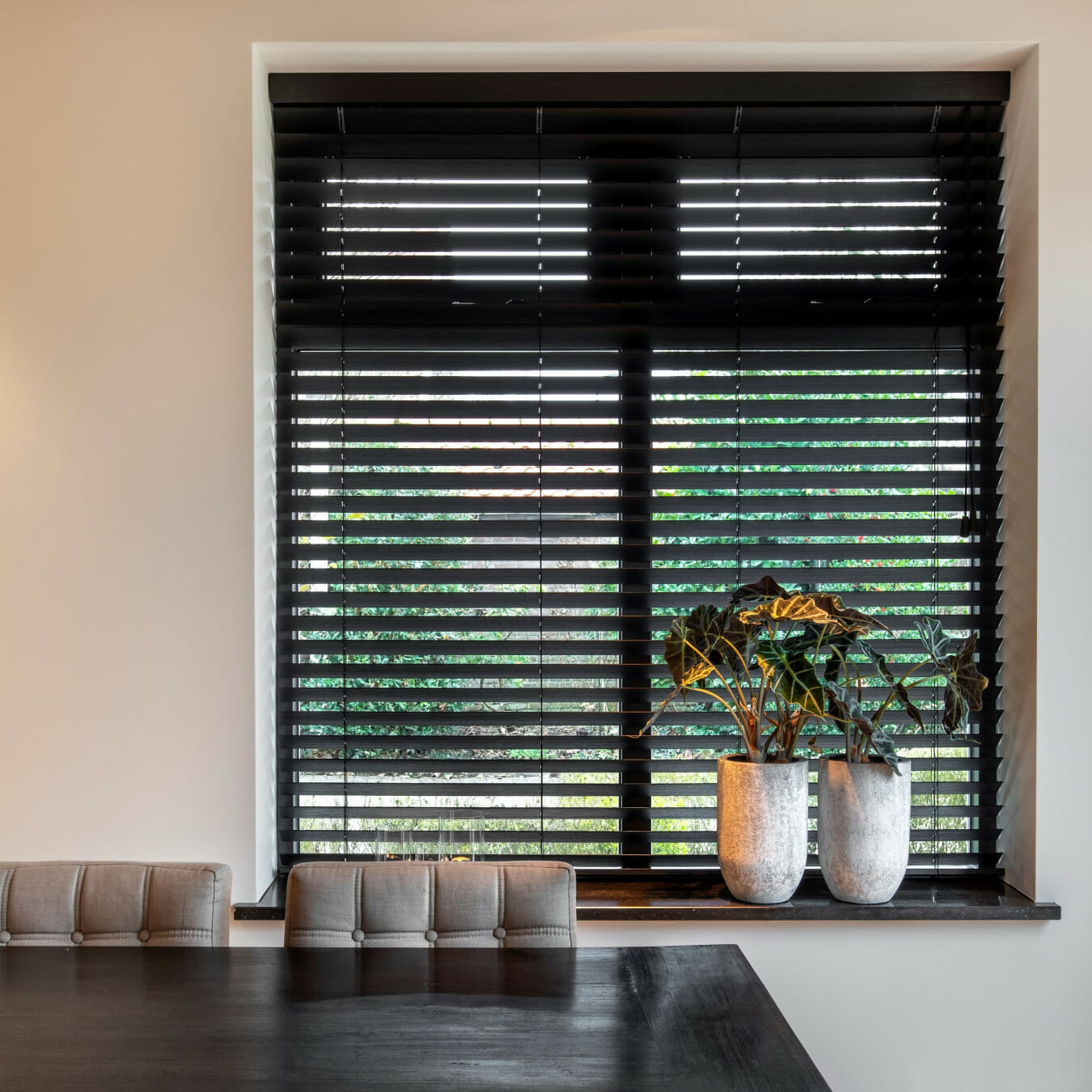 Houten jaloezieën zijn verkrijgbaar in eindeloos veel kleuren met een ruim aanbod aan lamelbreedtes. Hierdoor heeft iedere jaloezie een eigen uitstraling. Kies bijvoorbeeld voor houten jaloezieën in dezelfde kleur als het kozijn of juist een contrastkleur waardoor de raambekleding een echte blikvanger wordt. De houten textuur past perfect bij keuken met een luxe houtlook.