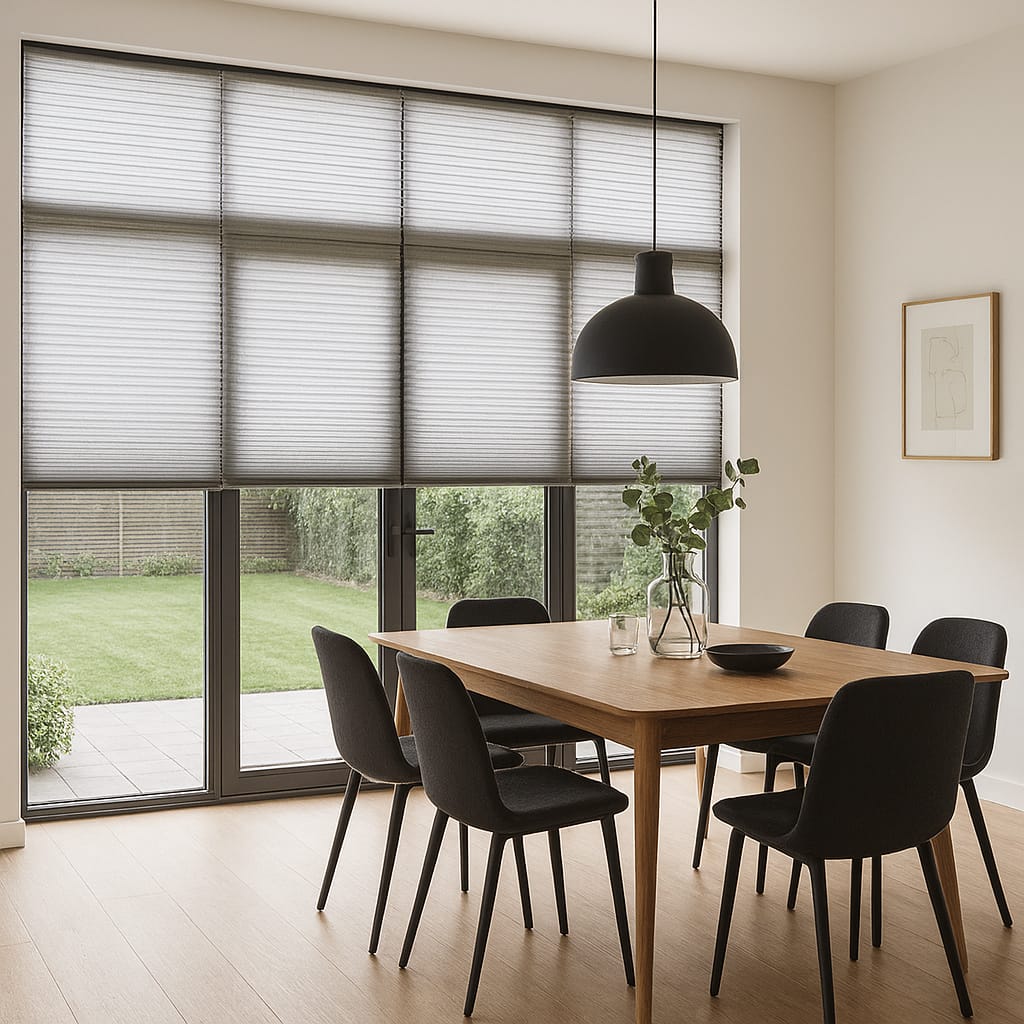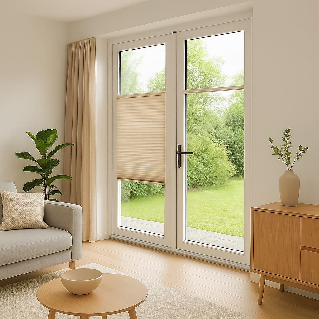 Om extra daglicht te creëren in huis kun je kiezen voor deuren met glas. Denk aan een subtiel, smal raam bij de voordeur of robuuste tuindeuren aan de achterzijde. De lichtinval reikt diep de woning in en zorgt voor een ruimtelijke sfeer. Raambekleding helpt om het daglicht te filteren, en een plissé is daarom de uitstekende keuze voor een deur.