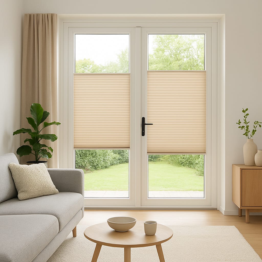 Een veelzijdige en handige eigenschap van een plissé is dat deze Top down/Bottom up kan worden uitgevoerd. Dit betekent dat ze niet alleen standaard van boven naar beneden bediend kan worden, maar ook van beneden naar boven. Ideaal om het daglicht te reguleren op ieder moment van de dag of om extra privacy te creëren.